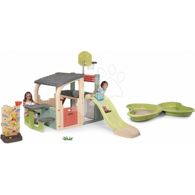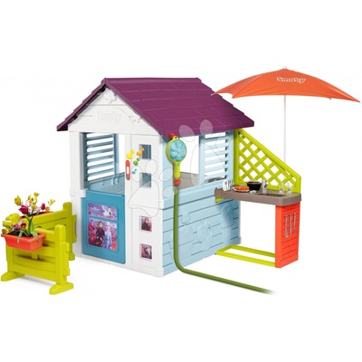 Smoby Dětský domeček na pilířích se čtvercovým pískovištěm/záhonem a skluzavkou SM810801