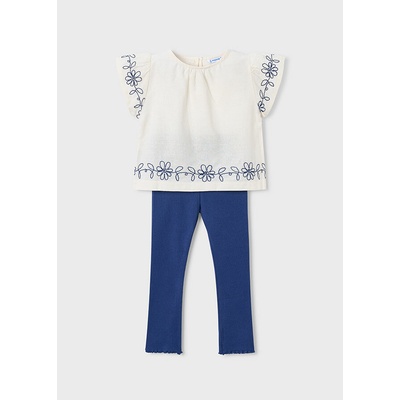 Mayoral dívčí souprava halenky s krátkým rukávem a legínek. Set je z velmi příjemného bavlněného materiálu. Halenka je zdobená vyšívanýma kytičkama.
