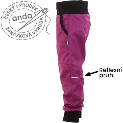 Dětské softshellové kalhoty jarní s bambusovou vložkou, růžové (fuchsiové). Naprosto úžasné - praktické softshellové kalhoty na řádění venku od jara až do...