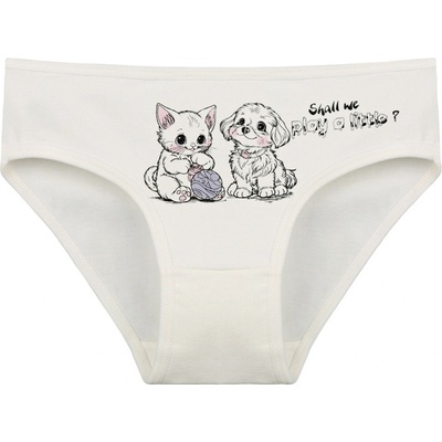 Dětské bavlněné kalhotky Olivia. Dětské kalhotky klasického střihu jsou pohodlné a slušivé, zdobí je obrázek kotěte se štěňátkem. Obzvláště oceníte materiálové složení - 95%...