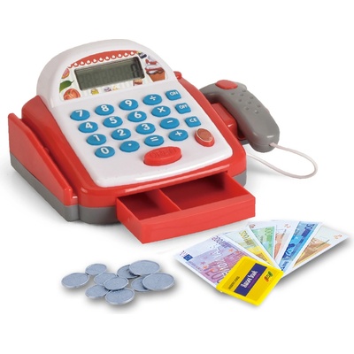 *** Pokladna o velikosti 18cm, dětská registrační kasa na baterie, se světlem a zvukem. Součástí dětské peníze a čtečka čárových kódů. Funkční kalkulačka s displejem. Dětská...