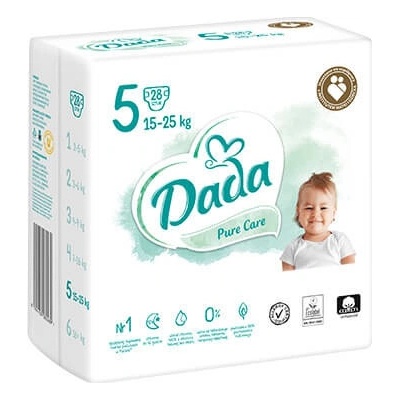 Dada Pure Care 5 JUNIOR 15-25kg 28ks Nové plenky Dada Pure Care mini jsou určeny pro děti o hmotnosti od 4 do 9 kg. Plenky Dada Pure Care jsou vyrobeny s ohledem na bezpečnost...