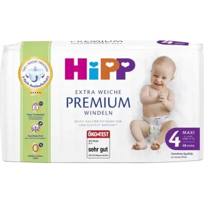 Babysanft extra weiche Windeln Größe 4 (Maxi, 8-14 kg):Weil sensible Haut besonders weiche Windeln braucht, halten die neuen HiPP Babysanft Extra Weiche Windeln Ihr Baby nicht...