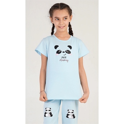 Dětské bavlněné pyžamo kapri Klára. Dětské pyžamo se skládá z trička s krátkým rukávem a tříčtvrtečních kalhot. Jednobarevné tričko zdobí obrázek pandy a drobný nápis. Pandí...