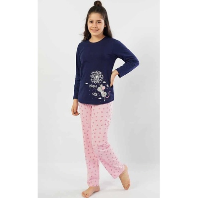 Dětské pyžamo dlouhé Myš s pampeliškou. Dětské pyžamo se skládá z dlouhých kalhot a trička s dlouhým rukávem. Na jednobarevném tričku je obrázek roztomilé myšky letící na...