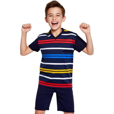Dětské pyžamo s krátkým rukávem je ozdobené tiskem na tričku a na kraťasech. Tričko má lem u krku a štepování v barvě kalhot. Souprava je vhodná na spaní i na...