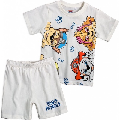 Dětské pyžamo s oblíbenou Tlapkovou patrolou. Tričko s krátkým rukávem, s velkým barevným obrázkem. Pohodlné šortky s drobným nápisem. Příjemný bavlněný úplet.