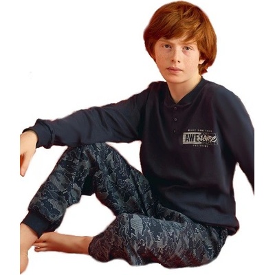 Tmavě modré i maskáčové pyžamo pro kluky s knoflíky AWE some Nádherné chlapecké pyžamo z krásné bavlny. Dokonale vyladěný komplet na spaní. Pyžamo má dlouhé rukávy i nohavice...