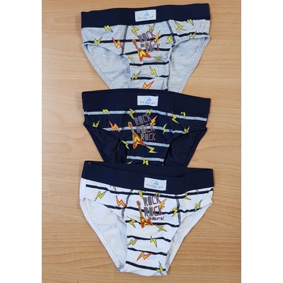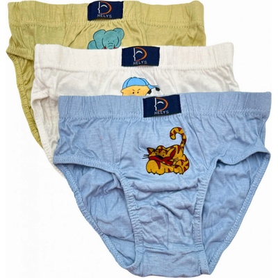 Dětské slipy ze 100% bavlny. Balení obsahuje 3 kusy - modrá, tmavě modrá, zelená. Cena balíčku 78,- Kč, 1 kus 26,- Kč. Materiál: 100% bavlna