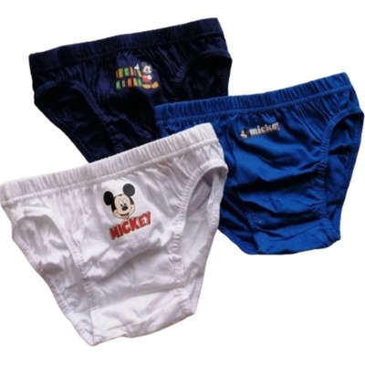 krásné slipy s oblíbenou postavičkou Mickeym materiál : 100% bavlna balení obsahuje 3 kusy slipů velikost : 92/898,98/104,110/116 barva : modrá, bílá