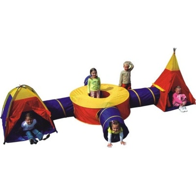 Skladem pouze výrobek s poškozeným (rozbaleným) obalem. Herní soustava se čtyřmi tunely a dvěma dětskými stany pro nekončící dětské hrátky. Dětský set se skládá ze dvou stanů...