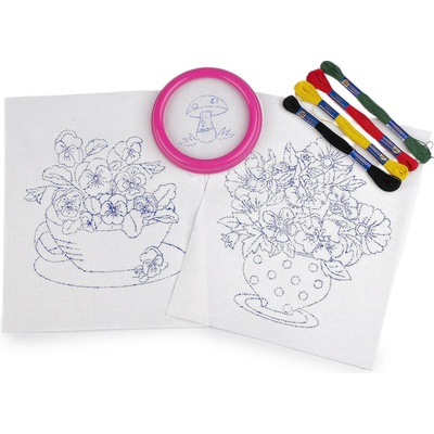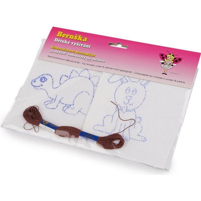 Dětské vyšívání. Balení obsahuje 2ks látky (na klasický steh a křížkový steh), každá předloha obsahuje dvě bavlnky. Vhodné pro děti, které se učí vyšívat. Vhodné i jako dárek....