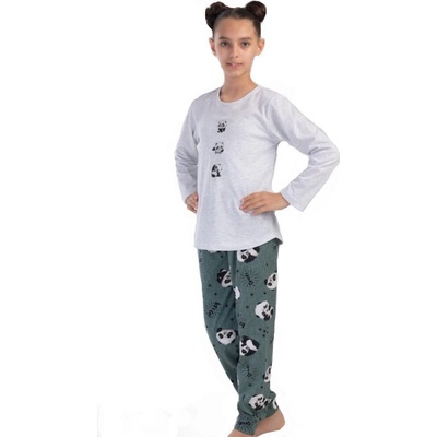 Šedé i zelené dívčí pyžamo s pandama Pyžamo pro holky z kvalitní a příjemné bavlny. Nádherný volnočasový komplet pro pohodlný spánek Pyžamo má dlouhé rukávy a dlouhé nohavice...