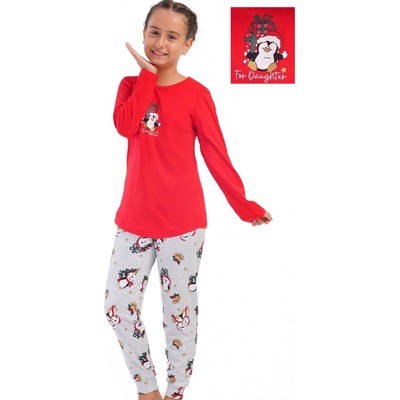 Červené i šedá a barevné VÁNOČNÍ pyžamo pro holky s tučňákem stromečkem a dárky Pyžamo pro holky z kvalitní a příjemné bavlny. Nádherný volnočasový komplet pro pohodlný...