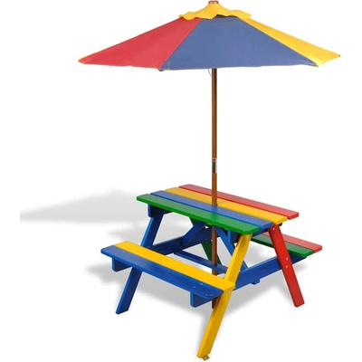 Dětský zahradní set pro bezpečnou hru vašich dětí Dětský set do interiéru i exteriéru sestává ze stolu se dvěma pevně spojenými lavicemi a velkého slunečníku ze 100% polyesteru....