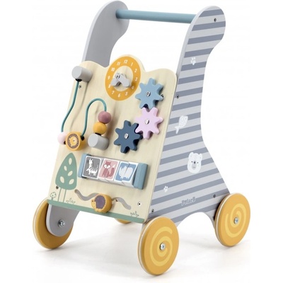 Multifunkční dřevěné chodítko s rozvíjejícími hračkami. Podporuje pohyb a koordinaci od prvních krůčků formou zábavné hry.