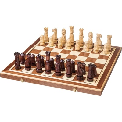 Exkluzivní, ručně vyřezávané šachy, velikost šachovnice 62 x 62 cm. Figurky jsou detailně zpracované z javorového dřeva, výška krále 12 cm. Skládací šachovnice s úložným...