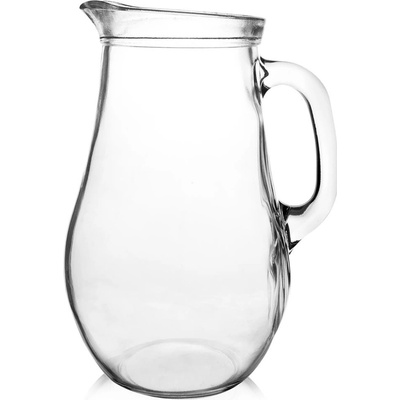 Džbán s uchem a výlevkou. - Materiál: sklo. - Rozměry: objem 1,5 l, pr. 13 cm, v. 22 cm. - Lze mýt v myčce na nádobí.