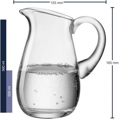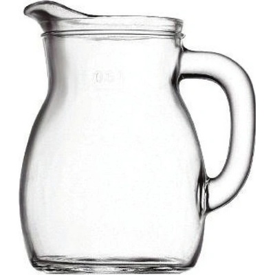 Skleněný džbán Bistrot 0,6l Elegantní skleněný džbán s cejchem na hladině 0,5l z odolného skla pro každodenní použití. Výška džbánu: 145mm, průměr: 77mm, balení 12ks. Možnost...