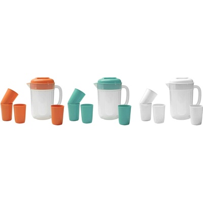 Cena za 1 sadu. Džbán 2400ml s odměrkou, kelímky 300ml. Různé barevné provedení, dodání dle aktuální skladové dostupnosti