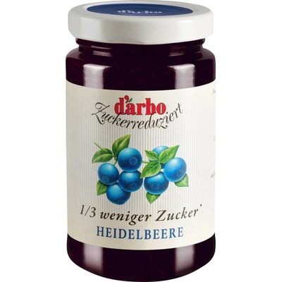 Darbo Reform Fruchtaufstrich Heidelbeer 330 g Jemně pasírovaný (bez zrníček) K výrobě džemů Darbo se používá pouze čerstvé ovoce a tím pádem zaručuje plnou, kvalitní ovocnou chuť produktů, a dostatek vitamínů. Složení: sladidlo sorbit sirup, 40 % borůvky, želírovací...