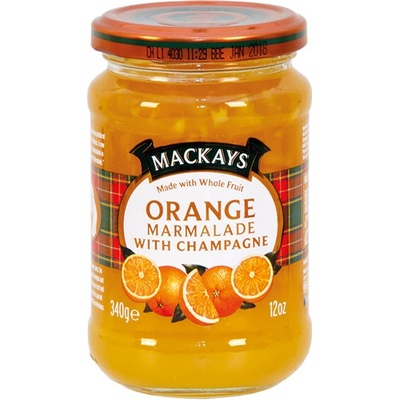 Mackays Pomerančová marmeláda se šampaňským, 340g Snídaňový pamlsek! Sladká marmeláda s nádechem šampaňského. Složení : Cukr, španělské sladké pomeranče, citronová šťáva...