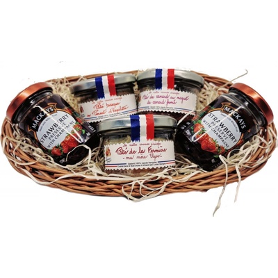 Mackays Ošatka Teriny a džemy 436g Dárková ošatka obsahuje: skotské džemy Mackays 2x113g a francouzské masové teriny Lucien Georgelin 3x70g. - 2x džem Pomeranč se šampaňským...