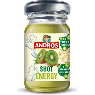 Andros Shot Energy kiwi 55ml - Alergeny: bez alergenů - Složení: Jablečná šťáva, pyré z kiwi 16 %, zázvorová šťáva 15 %, jablečné pyré, citronová šťáva 2 %, citrát hořečnatý,...