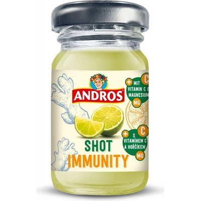 Andros Shot Immunity limetka 55ml - Alergeny: bez alergenů - Složení: Jablečná šťáva, jablečné pyré, zázvorová šťáva 13,8 %, limetková šťáva 12 %, citrát hořečnatý, vitamín...