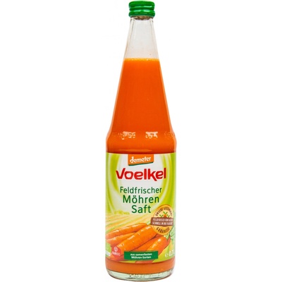 Přímá bio šťáva v kvalitě Demeter - vyrobená z mrkve odolné vůči semenům vypěstované v Německu a zpracované čerstvě z pole. Šťáva je veganská.