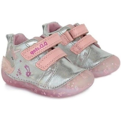 Dívčí obuv D.D. Step má svršek se stříbrným třpytem hezky zkombinovaný s růžovou podešví, která ve tmě neonově září. Samozřejmostí je celokožené provedení s měkkou stélkou,...