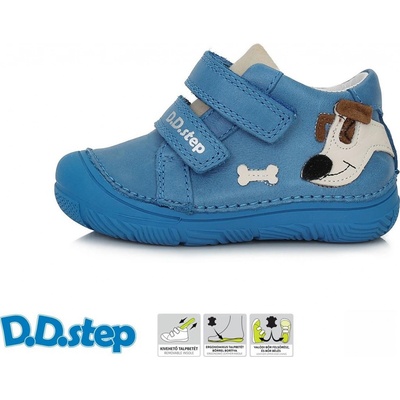 Kvalitní kožená dětská obuv D.D. Step. Použité přírodní materiály, testované v české laboratoři. Speciální technologie šití zaručující flexibilitu a komfort. Kulatá a...