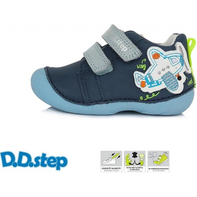 Vlastnosti dětské obuvi D.D.step - Použité přírodní testované materiály - Nová technologie šití zaručující flexibilitu a komfort - Kulatá prostorná špička poskytující...