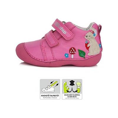 Kvalitní kožená dětská obuv D.D. Step. Použité přírodní materiály, testované v české laboratoři. Speciální technologie šití zaručující flexibilitu a komfort. Kulatá a...