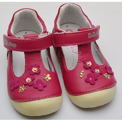 Dětská kožená obuv firmy D.D.step na 2 suché zipy. Vyndavací kožená stélka, kulatá prostorná špička, zpevněný opatek. Ohebná neklouzavá podešev,na špičce zvýšený gumový okop. Speciální technologie šití zaručuje flexibilitu a komfort. Použité přírodní materiály...