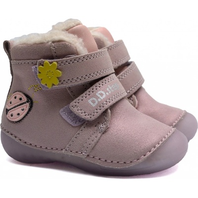 Zimní kožené boty s motivem berušky na světle fialovém podkladu. Kvalitní, teplé a dobře se obouvající botičky. Dětské zimní boty DD step jsou z kompromisní/barefoot řady v...