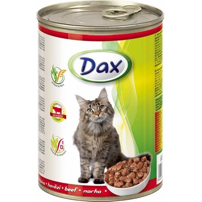 Dax konzerva s kousky hovězí v chutné omáčce je kompletní krmivo pro dospělé kočky.