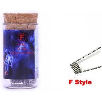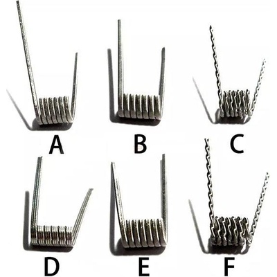 Typ: A) 0.5ohm 28GA * 2 + 38GA, 316L B) 0.35ohm 28GA * 2 + 38GA, 316L C) 0.5ohm (28GA * 2) + 38GA, 316L D) 0.25ohm 26GA * 3 + 38GA, 316L E) 0.25ohm 26GA * 2 + 38GA, 316L F) 0.3ohm (26GA * 2) + 38GA, 316L V jednom balení: 6ks spirálek