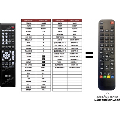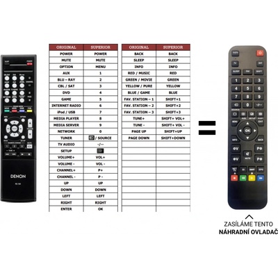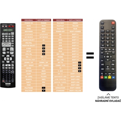 Denon náhradní dálkový ovladač BEZ NUTNOSTI PROGRAMOVÁNÍ. Pro denon avr-1707