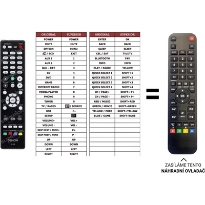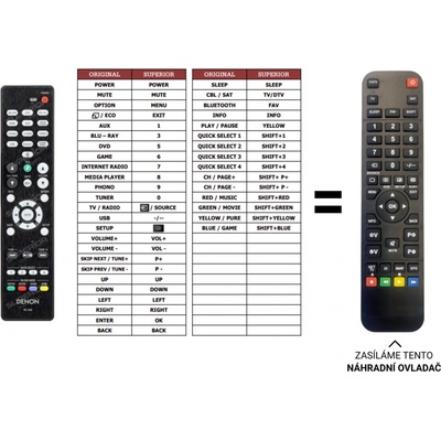 DENON RC1216 náhradní dálkový ovladač NEPOTŘEBUJE KÓDY. pro AVR-S540BT