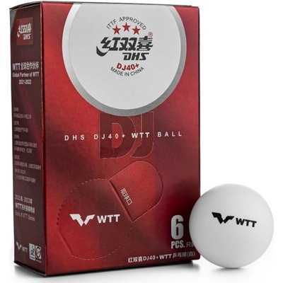 1 balení obsahuje 6 ks míčků. Soutěžní plastové míčky na stolní tenis DHS DJ40+ 3*** WTT ITTF se švem jsou novou generací plastových míčků na stolní tenis vyrobených z ABS materiálu. Schválené ITTF pro všechny typy soutěží.