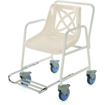 plastové sedátko s opěrkou zad výsuvná jednodílná podnožka kolečka s nášlapnou brzdou celková šířka: 55 cm celková hloubka: 78 cm šířka sedu: 43 cm hloubka sedu: 36 cm výška sedu: 46 cm výška opěrky zad: 35 cm Židle do sprchy pojízdná, 4550 FR na...