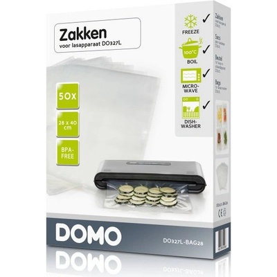 Sáčky do vakuovačky 28x40 cm, 50 ks - DOMO DO327L-BAG28 DOMO Předpřipravené silnostěnné sáčky pro uchování potravin vhodné pro výkonné vakuovačky. Sáčky vynikají vysokou pevností a odolností proti protržení a jsou vhodné pro dlouhodobé uchování potravin i pomalé...