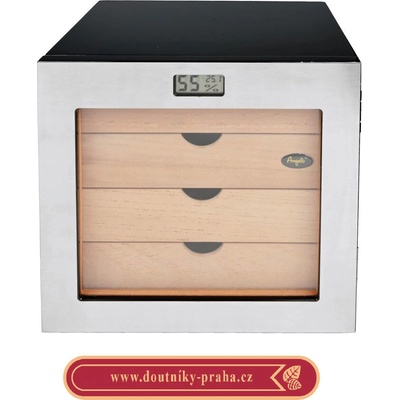 Stolní humidor na doutníky s kapacitou cca 35 doutníků. Dodáván s vlhkoměrem a zvlhčovačem. Vnitřek humidoru je vyložený cedrovým dřevem. Rozměr: 26x22x12 cm. Distributor:...