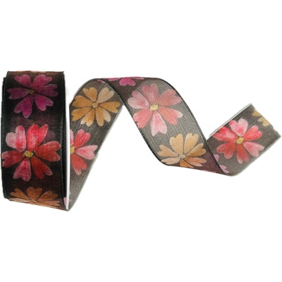 SUMMER DREAM BLACK SUMMER DREAM -organzová průsvitná stuha s barevným potiskem, s motivem pestrých květin oba okraje zpevněné tkaním, vetkán tenký silonový vlasec, má...