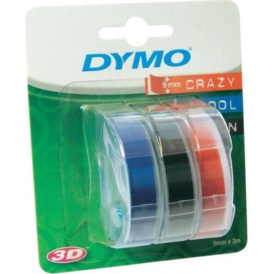 Dymo originální páska do tiskárny štítků, Dymo, S0847750, černý tisk/černý, modrý, červený podklad, 3m, 9mm, 1 blistr/3 ks, 3D