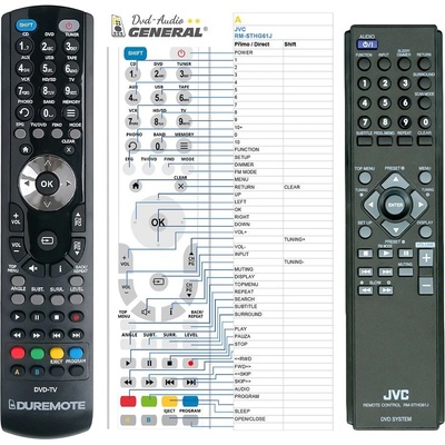 Náhradní dálkový ovladač JVC RM-STHG61J (RMSTHG61J) - 100procent náhrada 1:1 za originální dálkový ovladač. Dálkový ovladač je určen pro tyto modely JVC: XV-THG60, XV-THG61....