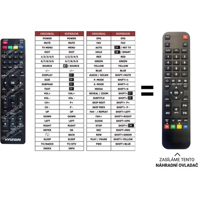 POUZE ZÁKLADNÍ FUNKCE. Náhradní dálkové ovladače hyundai. Náhrada má JEN ZÁKLADNÍ FUNKCE. Ovladač je připraven k použítí, stačí vložit baterie. Pro modely RC3920, LED TV,...