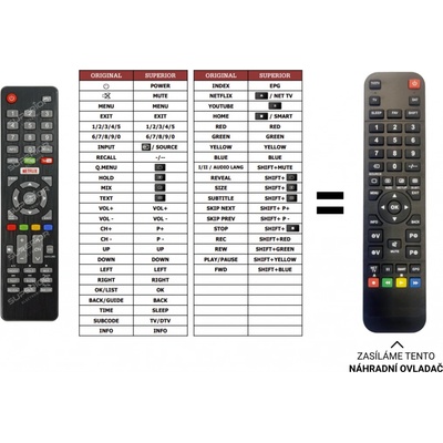 Náhradní dálkový ovladač k LCD hyundai bez zadávání kódů. Zasíláme stejný dálkový ovladač RC5117 který má jinde tlačítko netflix - viz obrázek
