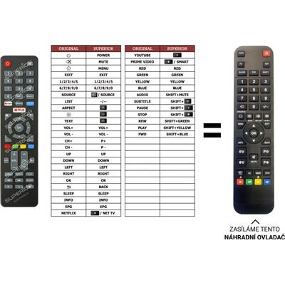 POUZE ZÁKLADNÍ FUNKCE. Náhradní dálkový ovladač NEPOTŘEBUJE KÓDY pro modely ULS50TS292SMART, ULS 50TS292 SMART
